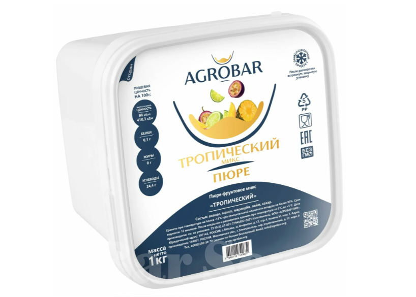 тропический микс состоит из пюре ананаса, манго, маракуйи и лайма.