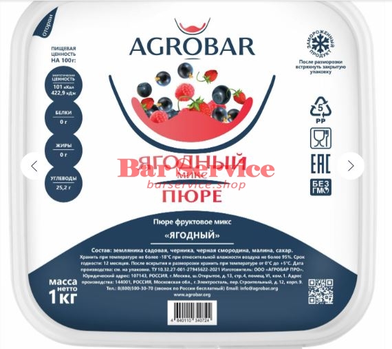 Наш ягодный микс состоит из пюре земляники, черники, черной смородины и малины. При изготовлении пюре, использует только натуральные ягоды и фрукты, без добавления консервантов, красителей, стабилизаторов, ГМО и прочих ингредиентов искусственного происхождения.